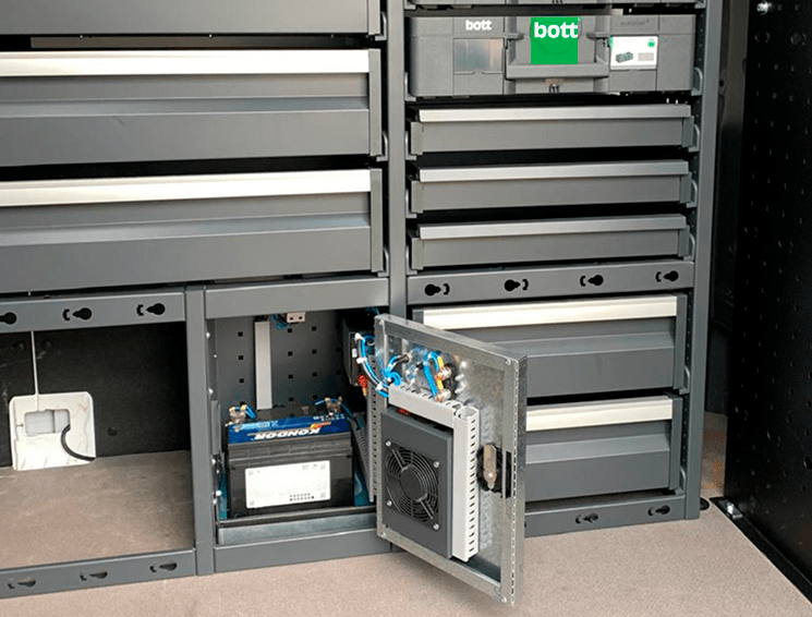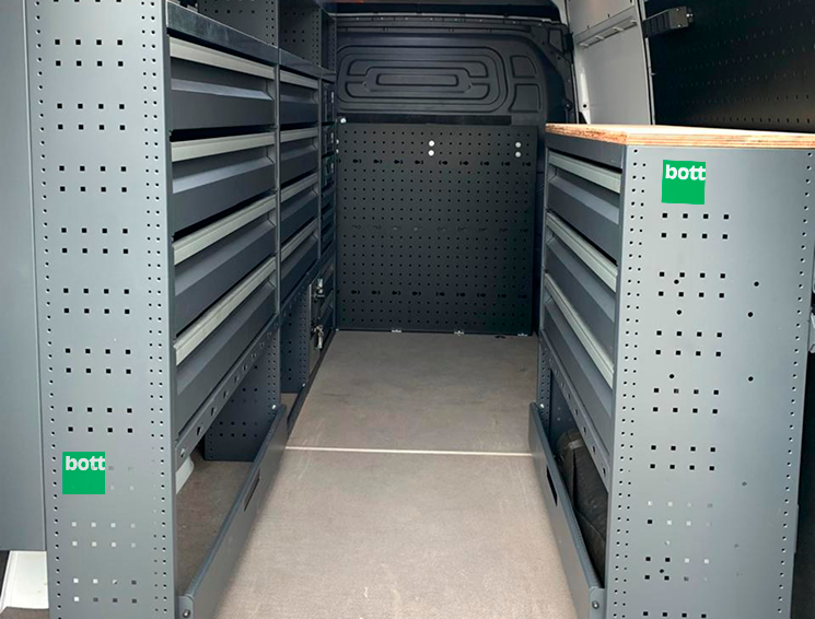 A Ellan, licenciada exclusiva da Bott no Brasil, desenvolveu um projeto personalizado para a Sprinter, utilizando módulos e acessórios de alta qualidade. A solução incluiu: